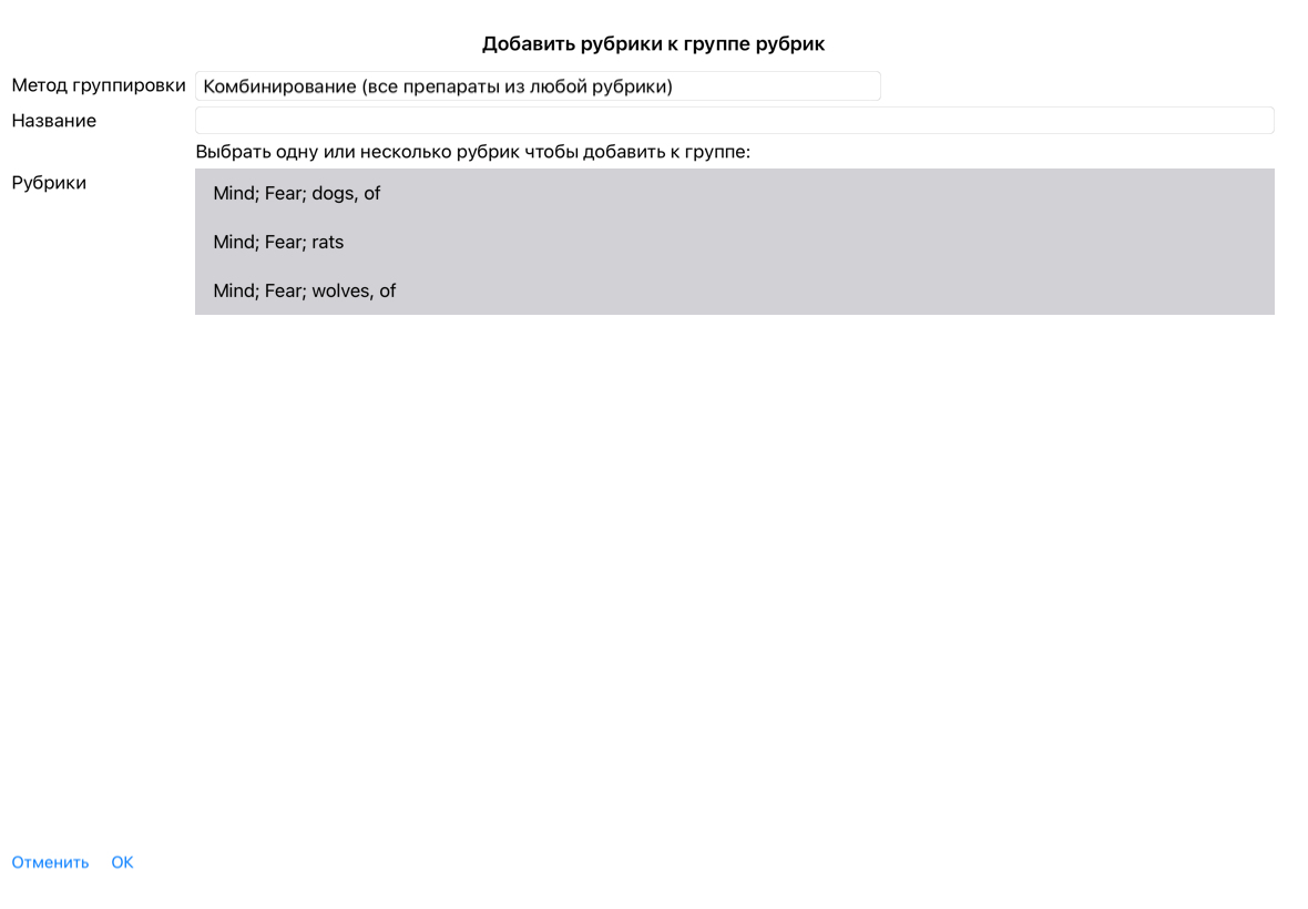 Комбинирование рубрик может быть полезным когда симптомы пациента не могут быть найдены в одной рубрике, и существуют другие синонимичные рубрики с близкими, но не одинаковыми списками лекарств.