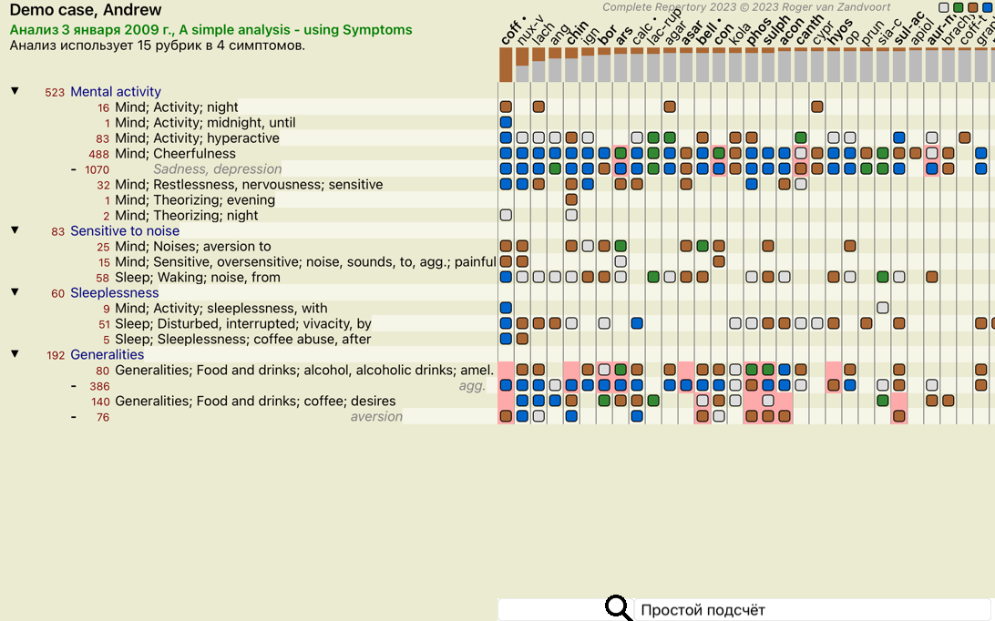 Результаты анализа тоже изменились, потому что в степень препаратов теперь внесена поправка со значениями противоположных рубрик.