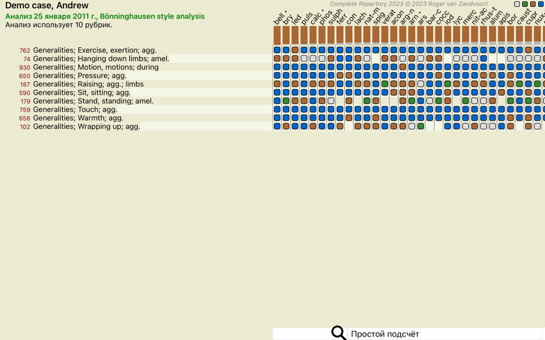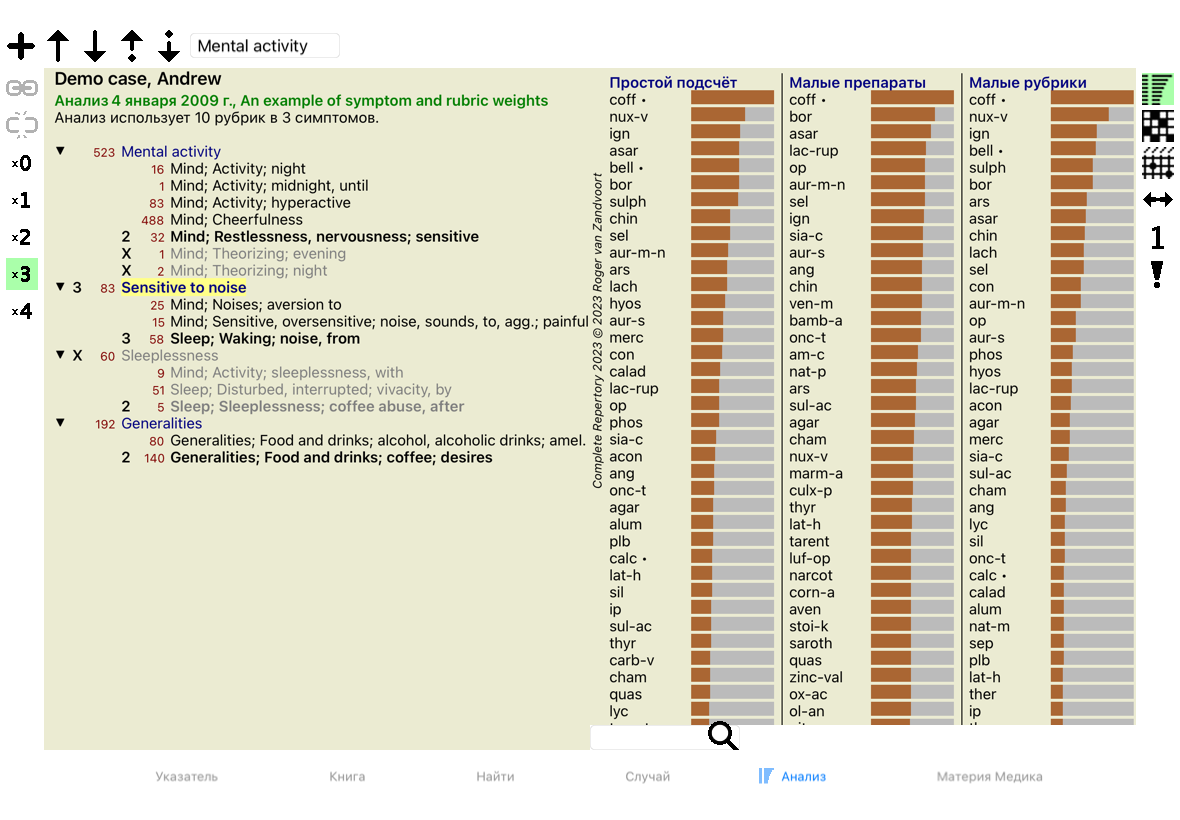 Каждому Симптому и каждой Рубрике можно присвоить определённую Значимость. Так же как Вы придаёте значение определённым симптомам пациента, или так же как препарат имеет определённую степень в репертории, Вы можете присвоить определенную значимость каждому Симптому и Рубрике.