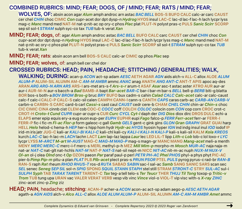 Когда несколько рубрие скомбинированны, группа содержит препараты встречающиеся в каждой из рубрик этой группы. Препарат получает градацию посамойвысокой из всех рубрик группы.